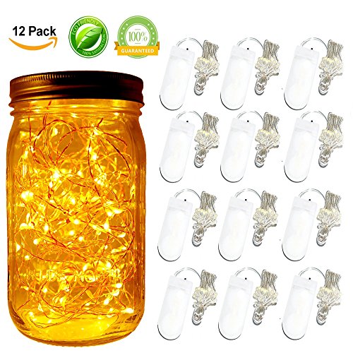 Battery Operated String Lights 12 Pack Warm White 7.2ft 20LED Firefly Starry Fairy Lights Bottle Mason Jar Decor Lights for Bedroom,Wedding,Christmas,Party Decorations