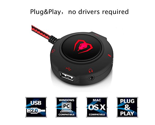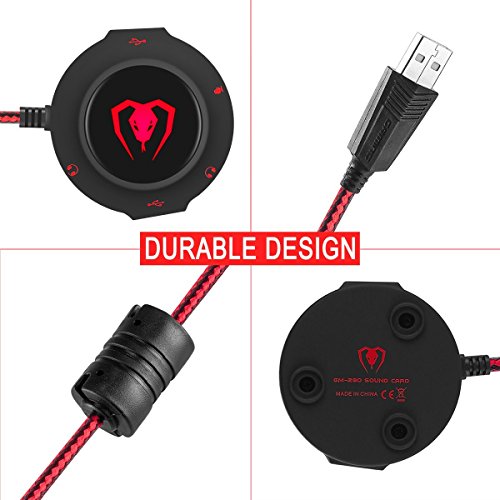 - 【REPLACE FAULTYDEVICES】Perfect to replace a faulty sound card, damaged 3.5mm audio port, or a broken USB audio adapter. With textile flexible cable of 1.2m, you can put the sound card on your desk, so easily plug your devices without bending over.