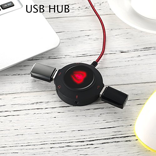 Micolindun External Sound Card USB Hubs Audio Adapter to USB port & 3.5mm Audio & Micro Jack for PC Laptop MAC. Plug and Play. … (Red)