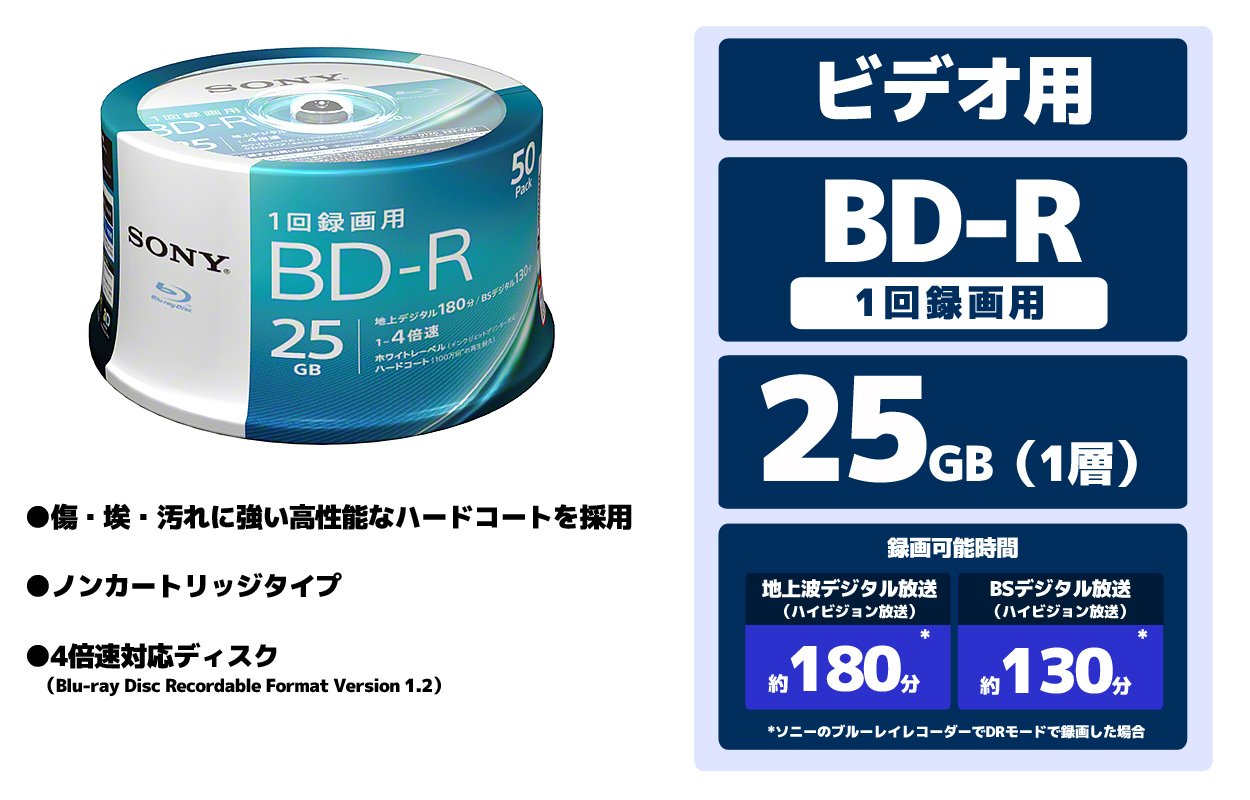 A comprehensive lineup of Blu-ray Disc inkjet compatible Wide (BD-R 1 layer: 4 times faster)