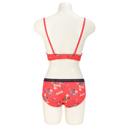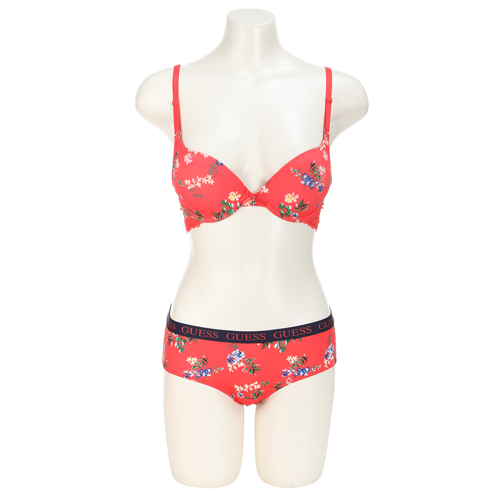 트렌디한 플라워 프린트로 홀리데이 시즌과 잘 어울리며, 게스진 콜라보 라인 브라.