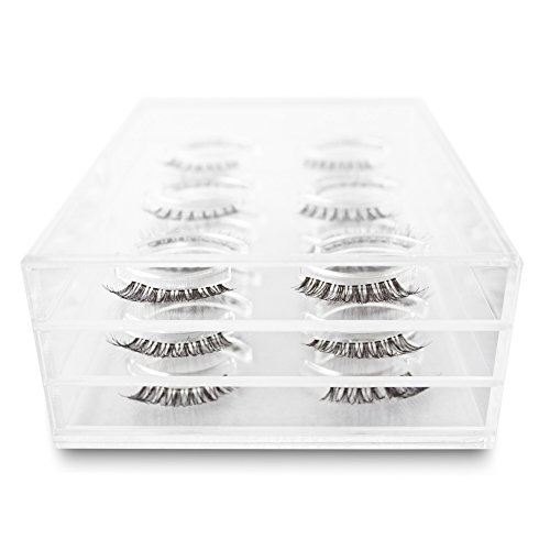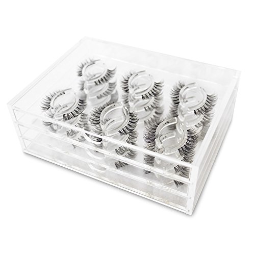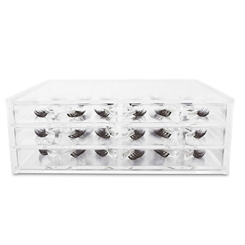 New Clear Acrylic False Eyelash Organizer 18 Pairs Set Of 3 Layers (1 Box) GOLDEN EMPIRE Durable Makeup Box
