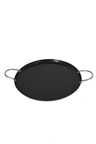Product Description 11" Diameter Non-Stick Paella Pan; Traditional Flat Surface; Carbon Steel Body for Quick and Even Heat Distribution; Suitable for Gas, Electric, Ceramic, Solid Hob electric Stovetop 0