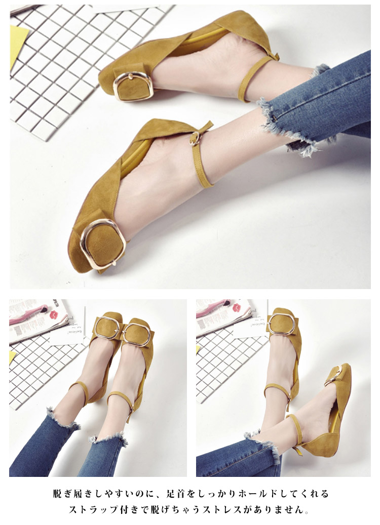 | コーデを選ばないデザイン&抜け感のあるペタンコシューズ。つま先、かかと部分隠せて、どんな時でも気にせず履けます。ちょっと見てもかわいいラウンドトウに飾りされて華やかな足元に。甲浅カットで女性らしい、スマートなシルエットになります。たくさん歩けて疲れにくい!脱ぎ履きしやすいのに、足首をしっかりホールドしてくれるストラップ付きで脱げちゃうストレスがありません。どんなコーデに合わせやすく、ローヒールで歩くのが楽だから、毎日履きたくなる! | |