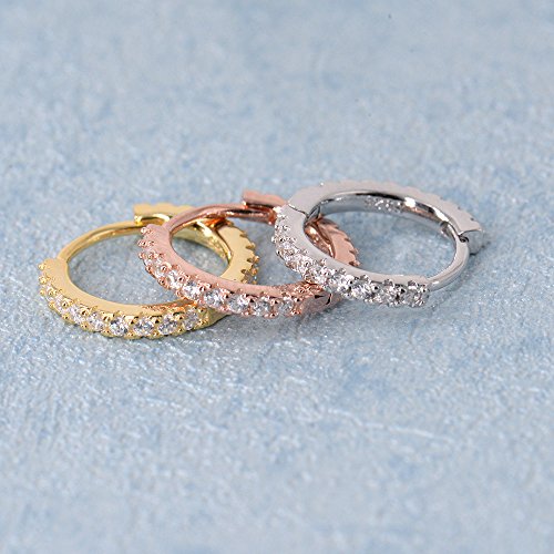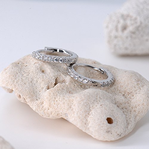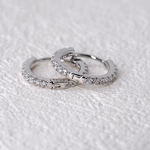 Meaurements - 12mm inner diameter small hoops, featuring 9 small cz stones each earring, set on a 3mm pave band.