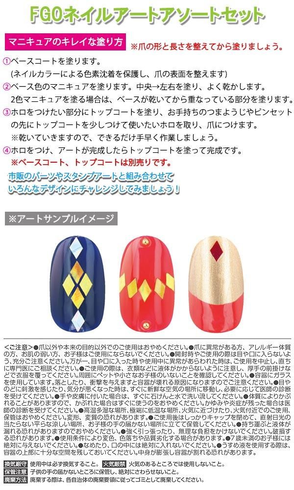 | 製造地 | FGOマニキュア:台湾、ホログラム・FGOスタンプアートセット:中国 |