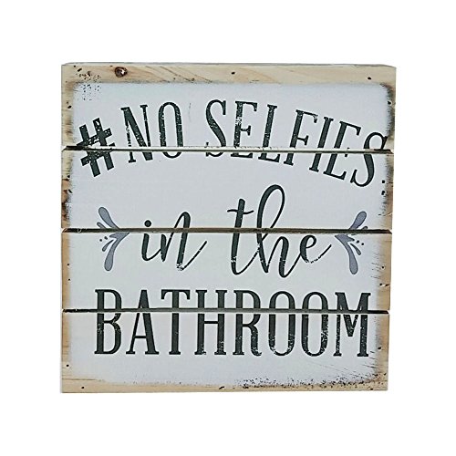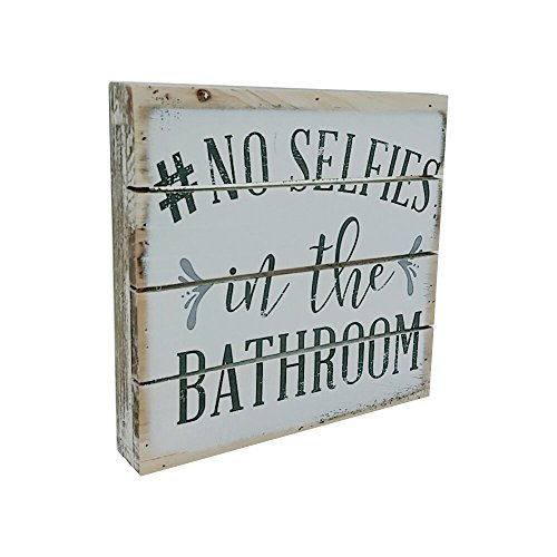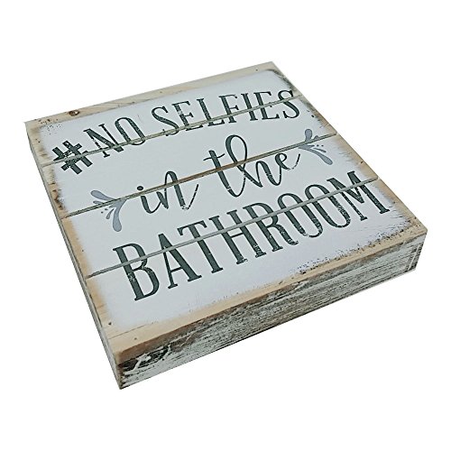 No Selfies in the Bathroom - Perfect Pallet Petites 6" X 6" Wood Wall Art Sign (No Selfies in the Bathroom)
