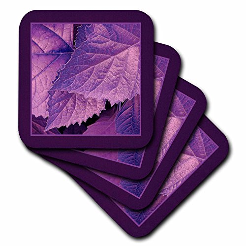 3dRose cst_33432_1 Eggplant and Royal Purple Metallic Leaves with Purple Frame-Soft Coasters, Set of 4