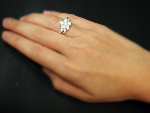 - Title : 925 Silver Plumeria w/ Maile Leaf Ring Hawaiian Silver Jewelry