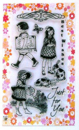 -. Title : Rural kids with book // Clear stamps pack (4"x7") FLONZ