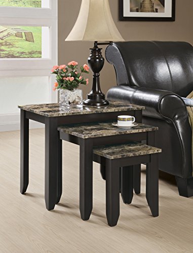 -. Feature : 3 piece rectangular nesting tables set / Sophisticated onyx/cream/grey marble-look table tops with a cappuccino base / Conveniently use as side/end tables and snack tables in any room / Large table: 25"lx15. 75"dx20. 75"h large table: 25"lx15. 75 large table: 25"lx15. 75"dx20. 75"h / Medium table: 19"lx14"dx17"h