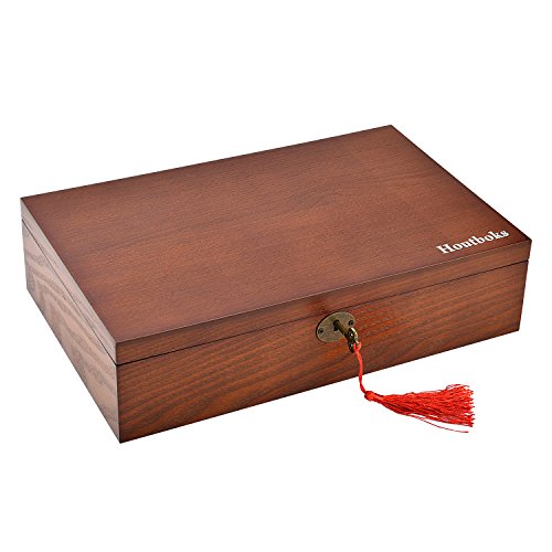 HOUTBOKS Wooden Luxury Classic Design Jewelry Box Multil Slot Watch Organizer Storage Case With Lock