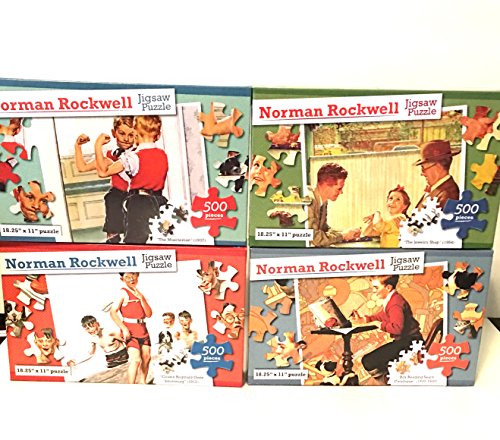 -. Feature : Includes 4 Puzzles Featuring Art by Norman Rockwell: / - "The Muscleman" (1937) - 500pc / - "Boy Reading Sears Catalogue" (1920-1930) - 500pc / - "Cousin Reginald Goes Swimming" (1917) - 500pc / - "The Jewelry Shop" (1954) - 500pc