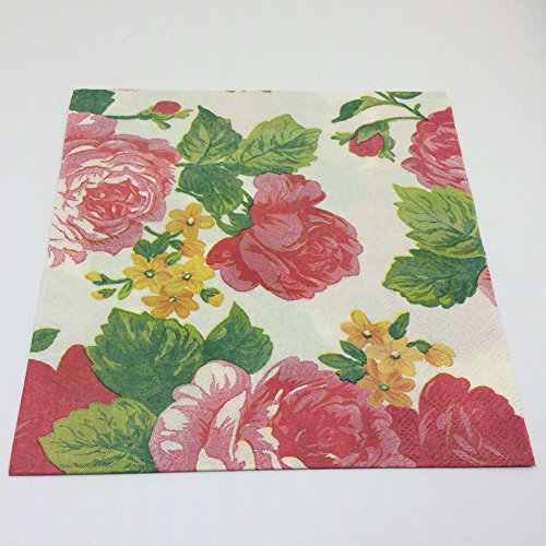 Romance Tales Food-grade Flower/rose Pattern Paper Napkin Wedding Baby Shower Festive & Party Tissue Napkin Supply Decoration, 13"*13" Pack of 20 (red and pink)