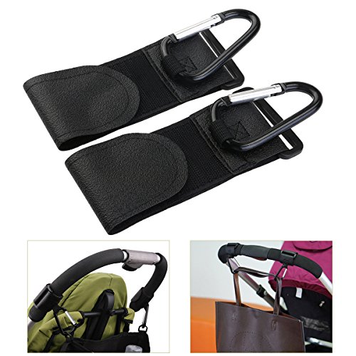 NUOLUX Buggy Stroller Metal Hanging Clip Hooks Pack of 2 (Black)