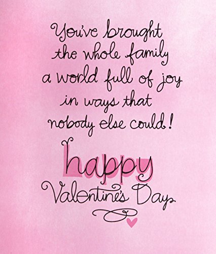Inside Message: You're all that's delightful, you're laughter and love, you're everything special and good...You've brought the whole family a world full of joy in ways that nobody else could! Happy Valentine's Day.