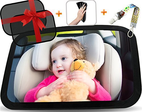 -. Feature : Top Quality Baby Car Mirror - A Must־Have product, enabling mom to oversee whether the Back Seat safety belt/straps are constantly secured. Providing a Convex Clear view of your precious. 360° pivot ball allowing a perfect view of your baby while driving safely. Ideal 8.7"* 6" viewable size, allowing a head-to-toe baby viewing, yet not being an interruption to your rear sight view. / Safety Tested - Non-Glass, Shatterproof Top Quality Acrylic Baby Car Mirror. Your, and your Baby's SAFETY is our P.R.IMARY GOAL. Not leaving a remote chance for any unexpected worries / Free Bonuses - Window Sun Shades, Baby Pacifier and a Microfiber cloth. Beautifully designed Box makes T-H-E Perfect Gift-Set / Adjustable Straps and Easy Installation in your Car Back Seat - Top Secure Strap Mechanism. No excess parts, minimalistic design for the safety of your baby. The mirror attaches in seconds to the headrest. Easy positioning / Backed by our LIFETIME WARRANTY! - 100% Satisfaction Guaranteed