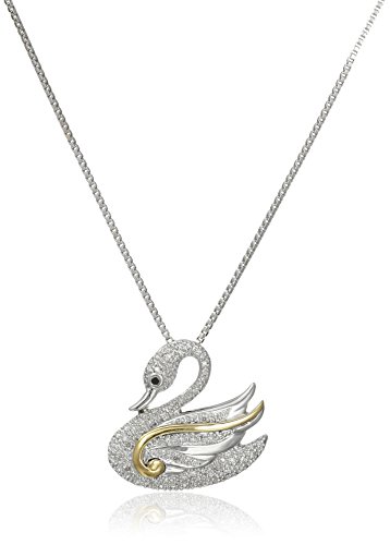 Sterling Silver and 14k Yellow Gold Diamond Swan Pendant Necklace (1/10 cttw, I-J Color, I2-I3 Clarity)