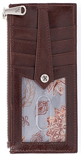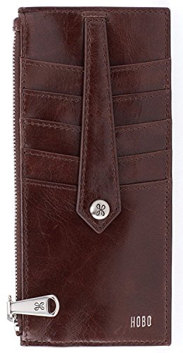 Take this Vintage Linn Card Holder Wallet from Hobo on the go. The minimalist design is perfect for the woman who doesn't have time to fumble around with those larger wallets or one just looking to head to the store really quick. The genuine leather exterior features 9 credit card slots secured by a snap closure, ensuring everything stays put. A center zip pocket is the perfect size for loose change or tickets, and the interior chain lets you hook this wallet to your purse for added security. Measures 6.5" x 3" x 0.5".Feature