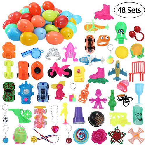 -. Title : iBaseToy 48 Easter Eggs Filled with 48 Different Toys - 2.6" Bright Colorful Prefilled Plastic SurP.R.Ise Eggs for Easter Egg Hunt (48 Pack)