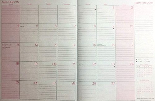 -. Feature : 2016 Monthly Planner ~ ~ Softcover, Plastic Protective Cover ~ Wipeable / Medium Size ~ 7 3/4" x 10" ~ Faint Colored Background / Includes: Layout of Years 2016 & 2017 Monthly Calendars for Yearly Planning / Section for Personal Info ~ List of Important Dates & Holidays / Address/Phone Number Pages ~ Weights & Measures Conversion Charts