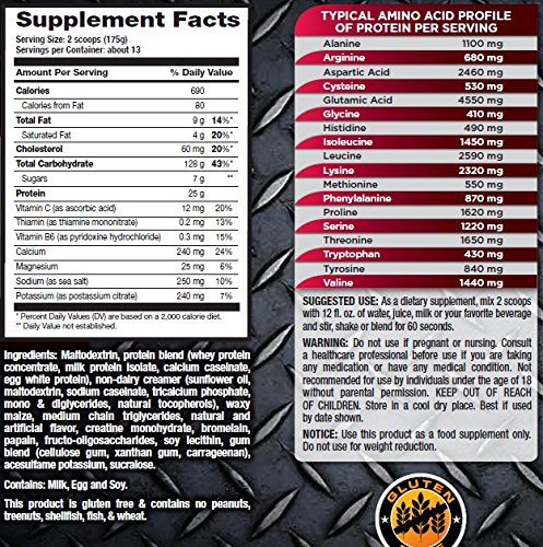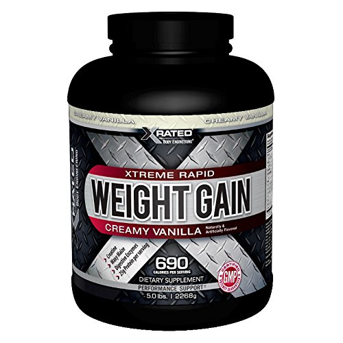 XRated® Xtreme Rapid Weight Gain makes it easier and faster to pack on weight and muscle by providing 690 hefty calories, 25 grams of protein, and more than 5 grams of branched-chain amino acids per serving. XRated® Xtreme Rapid Weight Gain was formulated so that caloric intake can be customized according to desired weight gain. Some athletes, depending on their metabolic rate, may require fewer calories to facilitate their weight gain and may prefer to start with 1 serving per day. Athletes desiring higher caloric intake may prefer to take 2 servings per day providing 1380 calories, 50 grams of protein and over 10 grams of branched-chain amino acids. Drink XRated® Xtreme Rapid Weight Gain with a balanced daily nutrition plan ? and enjoy a creamy, smooth superior tasting shake while conquering your weight goals.* XRated® Rapid Weight Gain - 1,380 calories per 2 servings