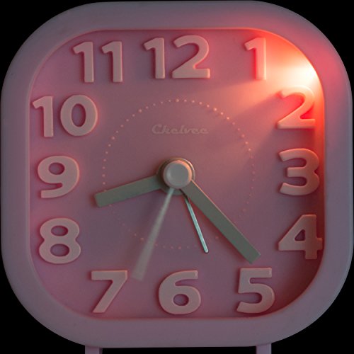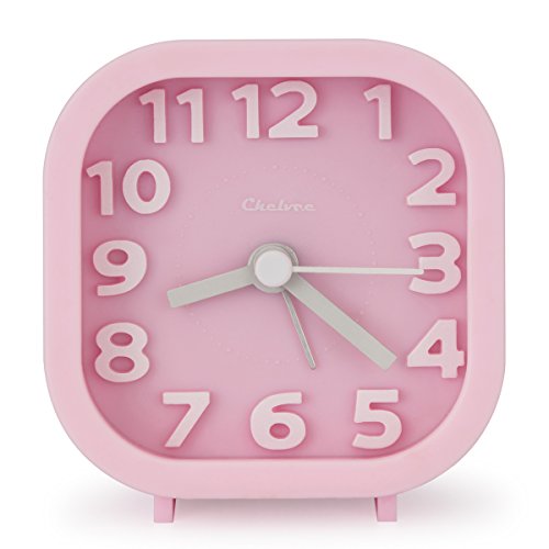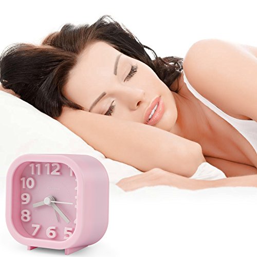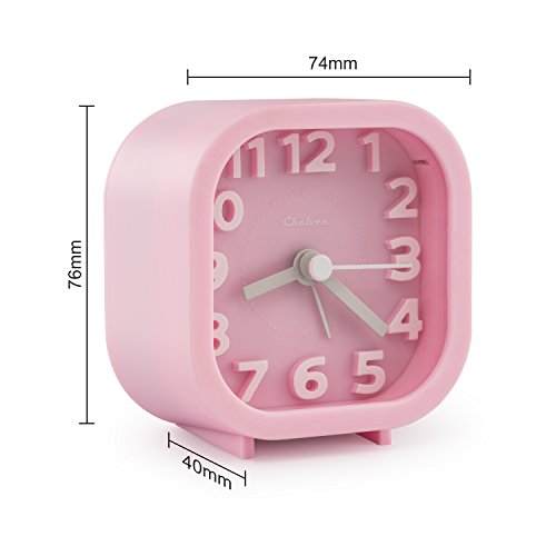 Alarm Clock, Chelvee 2” Quartz Analog Travel Alarm Clock with Night Light, Ultra Small, Silent with No Ticking (Pink)