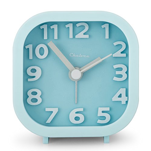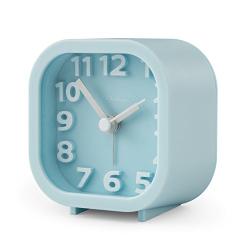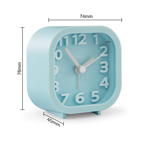 Alarm Clock, Chelvee 2” Quartz Analog Travel Alarm Clock with Night Light, Ultra Small, Silent with No Ticking (Blue)