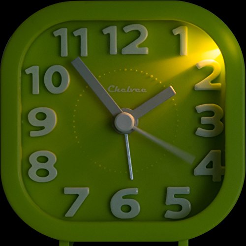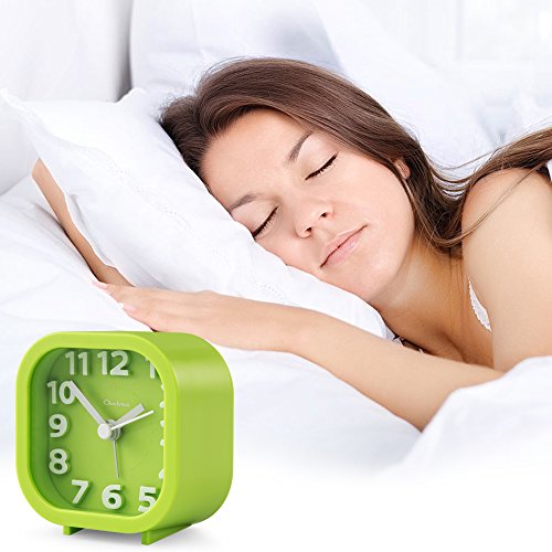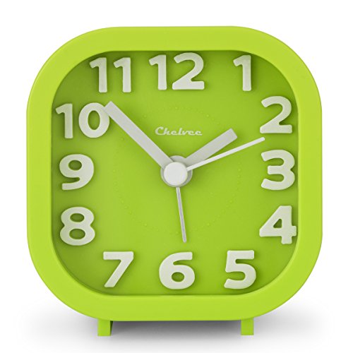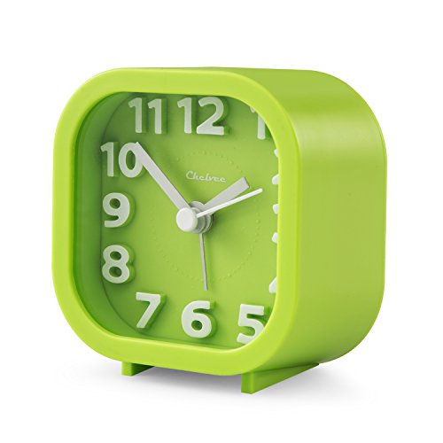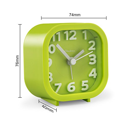 Alarm Clock, Chelvee 2” Quartz Analog Travel Alarm Clock with Night Light, Ultra Small, Silent with No Ticking (Green)