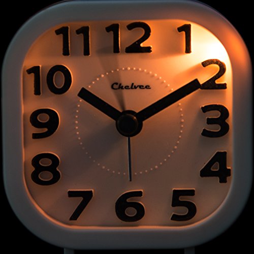 Alarm Clock, Chelvee 2” Quartz Analog Travel Alarm Clock with Night Light, Ultra Small, Silent with No Ticking (White)