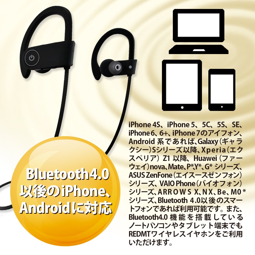 You can also use REDMT Wireless Earphone on laptop computers and tablet terminals equipped with Bluetooth 4.0 function.