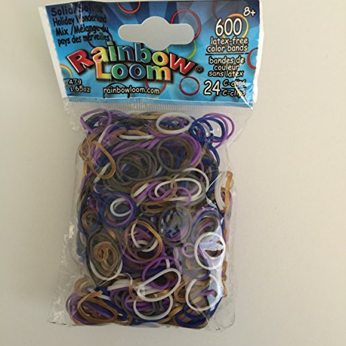 Product Description Holiday Wonderland Mix bands include dark navy blue, purple and white with metallic gold. Each bag of this richly colored mix contains 600 bands 24 c-clips. 0
