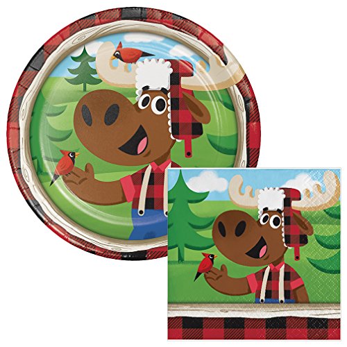 Lumberjack Moose Woodland Dessert Plates & Napkins Party Kit for 8