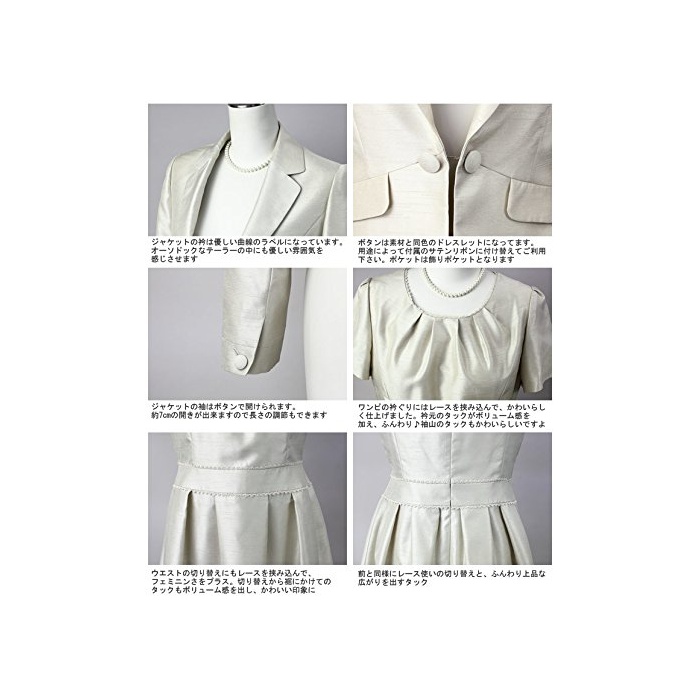 【활용해서 입기 할 수 있는2way사양】버튼과 새틴 리본 부착에 2대로의 활용해서 입기 를 할 수 있습니다.또한소지의 재킷이나 스커트 와 연계해서 합해 해 주십니다.새틴 리본은 포멀 씬을 색칠하는 화려함이다를 플러스 해 줍니다.【미실루엣】원피스는 웨스트 교환 아래에서의 충분히 주름에 의해옷자락에 향해 부드럽게 퍼져 매력적인 실루엣.깨끗하게 #의 장느낌으로,착용 장면이나 활용해서 입기는 가지각색.원피스의 소매는 가볍게 가볍고, 신경이 쓰이는《니》의 팔도 커버에 옵니다.재킷의 소매는 버튼을 열어 조절 가능.약7cm의 열어 수 있고길이도 조절로 옵니다.