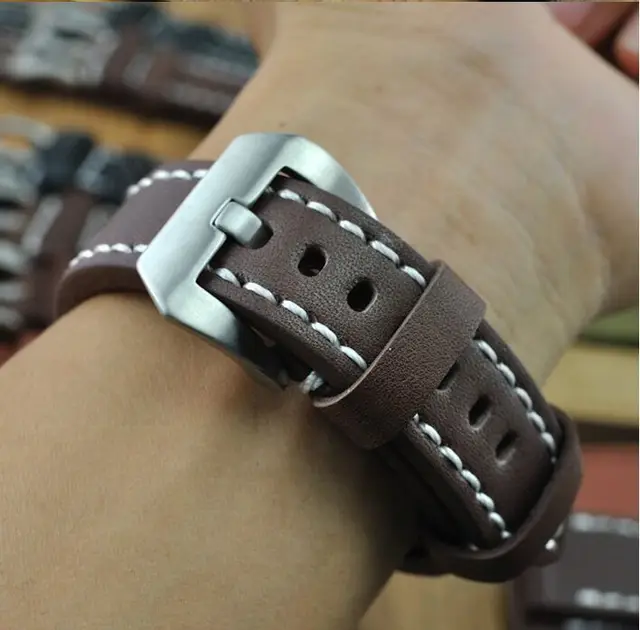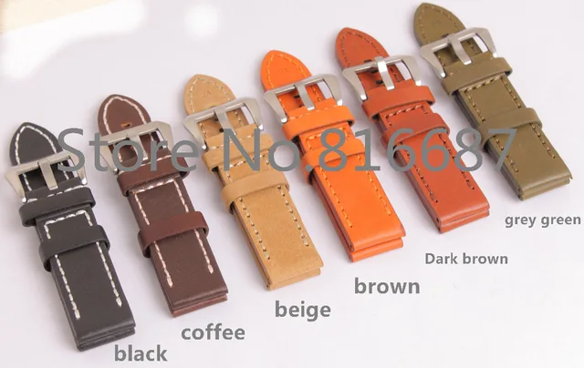 | [해외]새로운! 1 개 24 미리메터 수제 정품 소 가죽 시계 밴드 시계 스트랩 6 색상 가능 |
