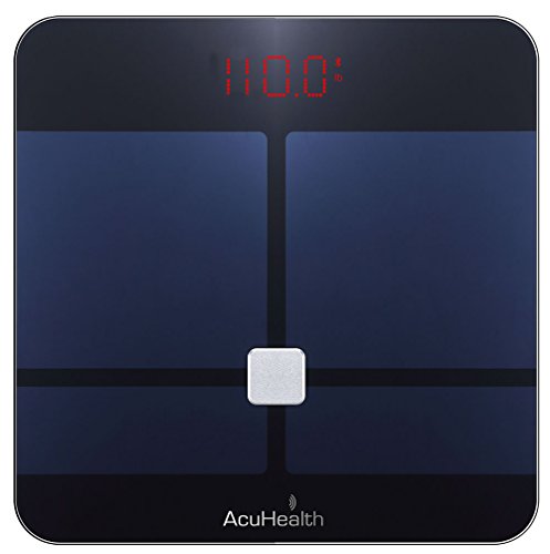 -. Feature : 10 PRECISION PHYSICAL HEALTH MEASUREMENTS - AcuHealth Smart Body Fat Scale monitors Body Weight, Body Water, Body Fat, BMI, BMR, Muscle Mass, Bone Mass, Visceral Fat and Physiological Age, great fitness monitor for healthy weight loss tracking. / BLUETOOTH 4.0 CONNECTIVITY - Compatible with iOS and Android smart phone Mobile Devices - Stores and displays body measurement histories for up to 10 different users with graphical diagram. Support Android 4.3 and IOS 6.1 and up. / INSTANT SETUP - Download the App by scanning QR code or visit the App store, connect to the "AcuHealth" app wirelessly to further track an assortment of other body indexes and store all readings. / MASSIVE 10 USERS TRACKING MANAGEMENT - AcuHealth digital smart body fat scale tracks up to 10 users at a time that works flawlessly with AcuHealth App. Break down fat loss and fortify exercise routines with individualized graphs and charts. / HIGH QUALITY AND STYLISH DESIGN - More than a high-quality fat loss tracker or weight scale, it also boasts crystal clear 3.3" backlit LCD display. The elegant and artistic design is truly for dressing room, bathroom, kitchen and home decor. A great item for personal use or as a gift for friends and family members.