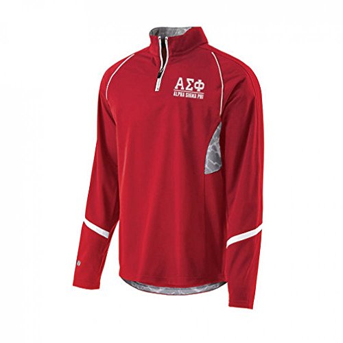 Binding : Apparel Product Description Alpha Sigma Phi Greek Tenacity Pullover. Agil-Knit™ is a 100% polyester brushed tricot with a peached finish Infrared dot printed dry-Excel™ pin-hole micromesh insertsplaced along heat zones for breathability Contrasting piping. 1/4 zip neckline Contoured cuffs with thumbholes Fit type: Semi-fitted. Line of personalization under the Greek letters is perfect for your school, chapter or nickname. If Left Blank We will spell out your group name under the Greek letters.
