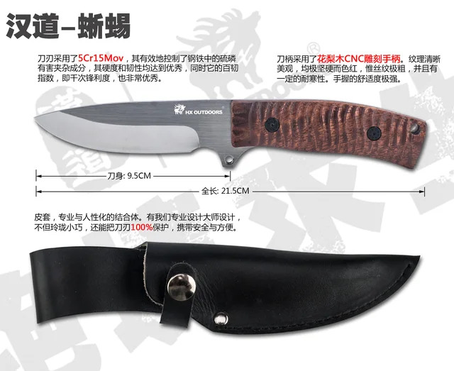 블레이드 재질: 3Cr13Mov핸들 재질: 로즈 우드경도: 56 HRC길이: 215 미리메터블레이드 길이: 95 미리메터무게: 180 그램표면: 거울 그리기범위: 드라이브 여행, 야외 스포츠, 선물 도구, 가구, 캠핑.