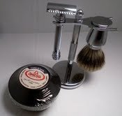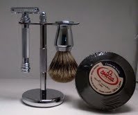 Merkur Shave Set With 38C Long Handle Barber Pole Razor + Chrome Stand + Badger Chrome Brush + Omega Shaving Cream Bowl by Merkur