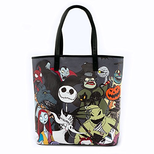-. Brand : Loungefly -. Department : womens -. Feature : FAUX LEATHER TOTE BAG WITH PRINTED DETAILS. / MEASUREMENTS: W: 17" X H: 14" X D: 5" -. ProductGroup : Apparel -. ProductTypeName : LUGGAGE -. Title : Loungefly x The Nightmare Before Christmas Character Tote Bag