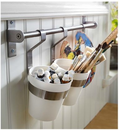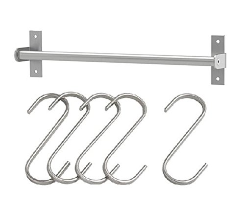 Ikea Stainless Steel Kitchen Organizer Set, 15.75 Inch Rail, 5 Hooks, Silver