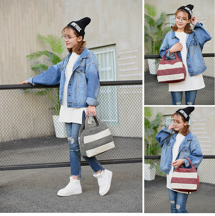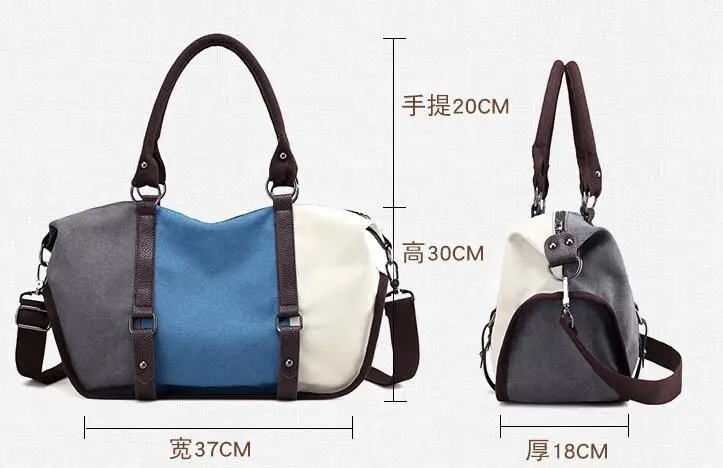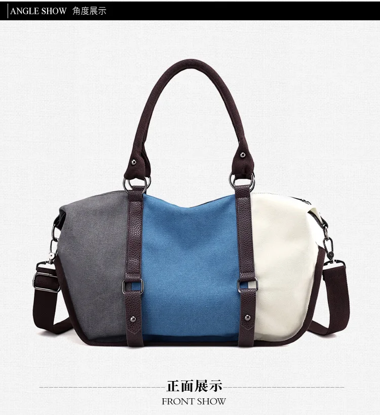 Casual Panelled Color Handbags:Women's Canvas Shoulder Crossbody Bags