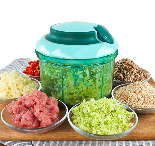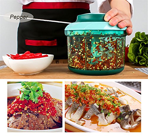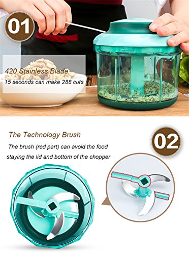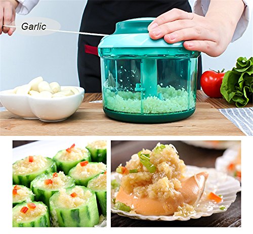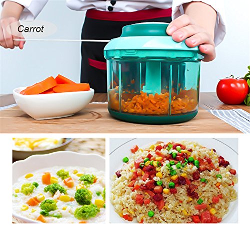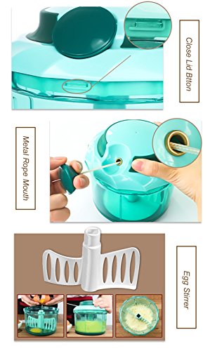 Instructions for use: Put the blade on the little post in the container Just pull the handle out until you have chopped the desired consistency that is ne The more you pull, the finer the items inside will be. Pulling the string to cut the food couldn't be easier. Warning: sharp knife, being careful your fingers Versatility: Powerful Manual Hand Held Processor / Chopper / Mincer / Mixer / Blender Used for: Chopping fruits, veggies, meats and other food products. Weight: 400g