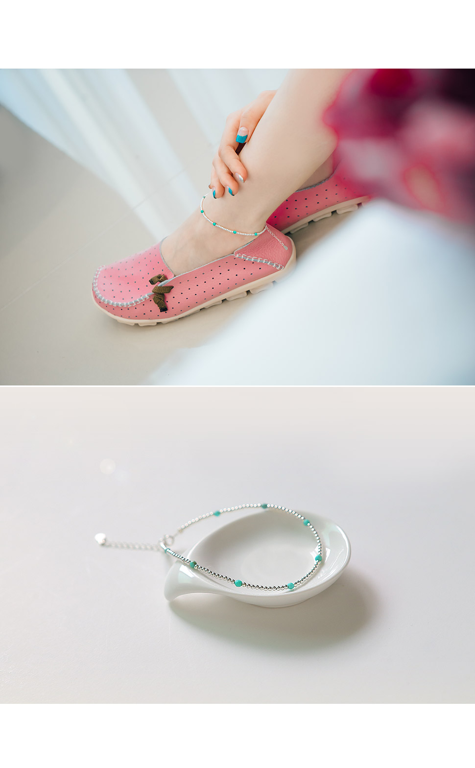 스윗한 컬러의 원석이 포인트 되는 92.5 Silver 발찌제품.