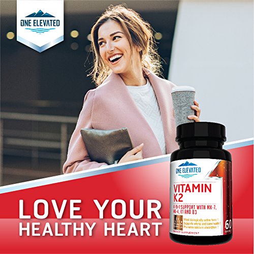 -. Binding : Health and Beauty -. Brand : One Elevated -. EAN : 0641606360732 -. Feature : ♥ A FULL SPECTRUM FORMULA: Provides 2 types of Vitamin K2: MK4 (Menatetrenone -4), MK7 (Menaquinone-7), Plus Vitamin K1 and Vitamin D3 for optimal results / ♥ STRONGER BONES: Helps transport and direct Calcium from the bloodstream and store it in the bones and teeth. / ♥ SUPPORT CARDIOVASCULAR HEALTH: Vitamin K2 keeps calcium out of your arterial lining, preventing calcification of coronary arteries. / ♥ MAXIMUM ABSORPTION: With superior bioavailability of Menaquionone-7, combined with Vitamin D3, Vitamin K2 is absorbed and utilized most efficiently / ♥ HIGHEST QUALITY: To ensure purity and safety, our products are manufactured in a fully GMP-certified facility. All Made in USA. -. IsAdultProduct : 0 -. Label : One Elevated -. LegalDisclaimer : These statements have not been evaluated by the Food and Drug Administration. This product is not intended to diagnose, treat, cure or prevent any disease. Actual product packaging and materials may contain more and different information than what is shown on our website. We recommend that you do not rely solely on the information presented and that you always read labels, warnings, and directions before using or consuming a product. Please see our full disclaimer below. -. Manufacturer : One Elevated -. MPN : VitaminK2001 -. PackageQuantity : 1 -. PartNumber : VitaminK2001 -. ProductGroup : Health and Beauty -. ProductTypeName : HEALTH_PERSONAL_CARE -. Publisher : One Elevated -. Studio : One Elevated -. Title : 8X Strength Natural Vitamin K2 Formula. Provides 4-in-1 Support with MK-7, MK-4, K1 and D3 with Maximum Absorption for Stronger Bones and Cardiovascular Health 60 Capsules -. UPC : 641606360732