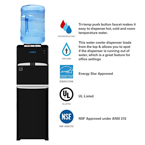 Lago Top Load Hot, Cold & Room Mini Black Water Cooler Dispenser