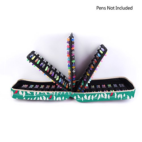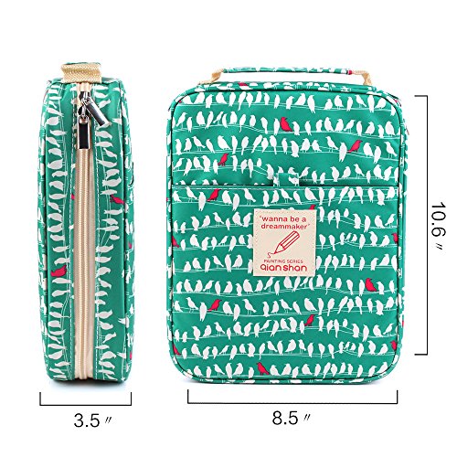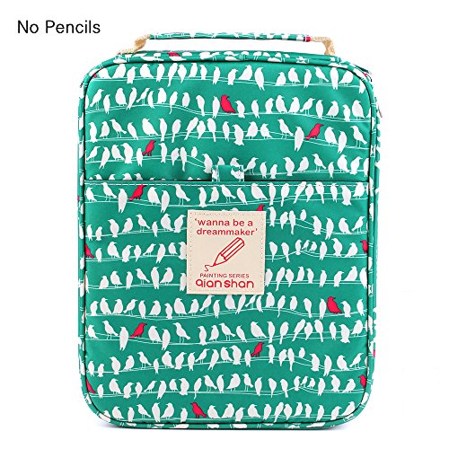 Pencil Case Holder Slot - Holds 202 Colored Pencils or 136 Gel Pens with Zipper Closure - Large Capacity Pen Organizer for Watercolor Pens & Markers | Perfect Gift for Students & Artist green birds