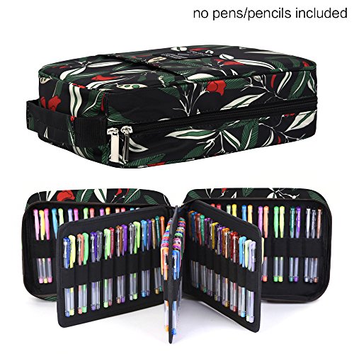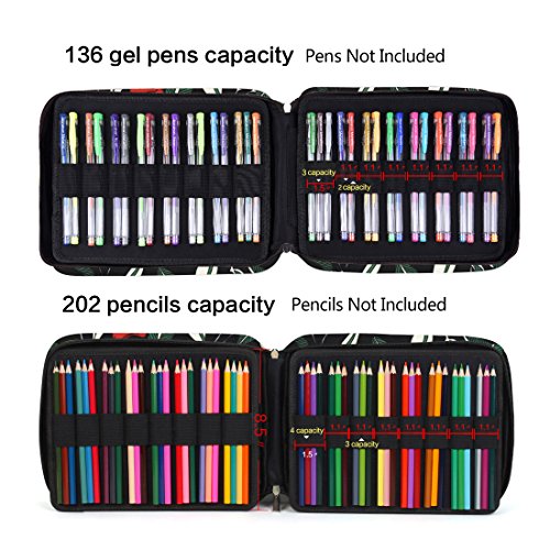 202 Colored Pencils Pencil Case / 136 color gel pens Pen Bag / Marker organizer - Universal Artist use Supply School Zippered Large Capacity slot Super Big Professional Storage qianshan leaf