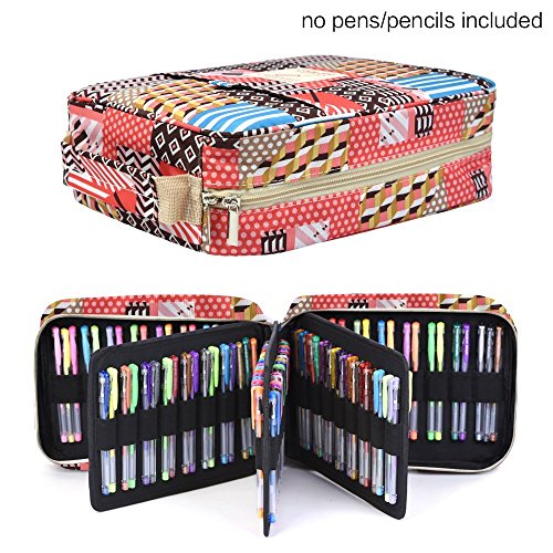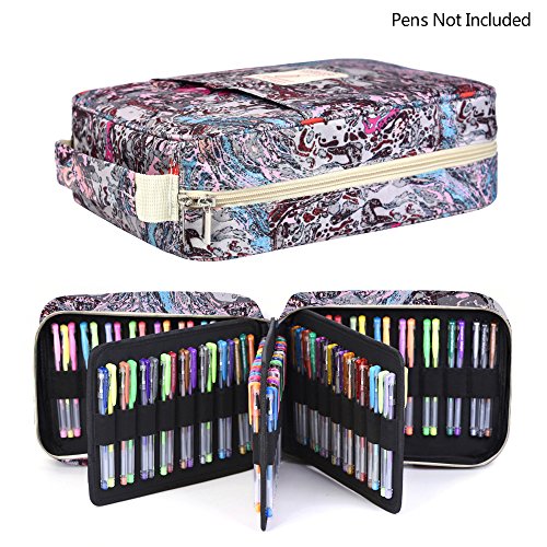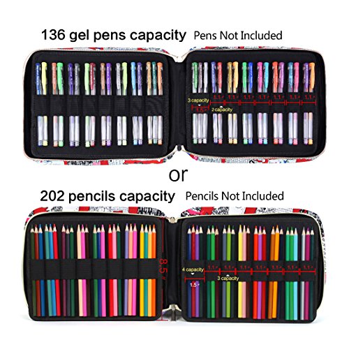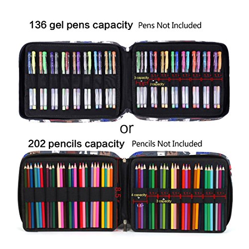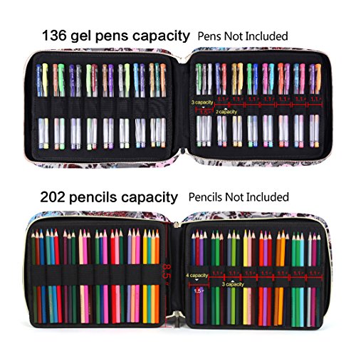202 Colored Pencils Pencil Case / 136 color gel pens Pen Bag / Marker organizer - Universal Artist use Supply School Zippered Large Capacity slot Super big Professional Storage qianshan geometric