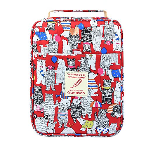 Pencil Case Holder Slot - Holds 202 Colored Pencils or 136 Gel Pens with Zipper Closure - Large Capacity Pen Organizer for Watercolor Pens & Markers | Perfect Gift for Students & Artist red bear